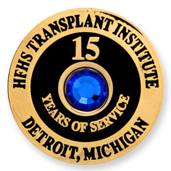 Design your pin the way you want. There are many options to mark years of service. Some suggestions that we make include simulated gemstones and danglers. Both can be used to recognized different milestones within one company. For example, employees with 10 years of service have one color of gemstone on their custom lapel pins while employees with 25 years of service have another color of gemstone on their pins. This makes it easy to recognize an individual’s achievement from far away.