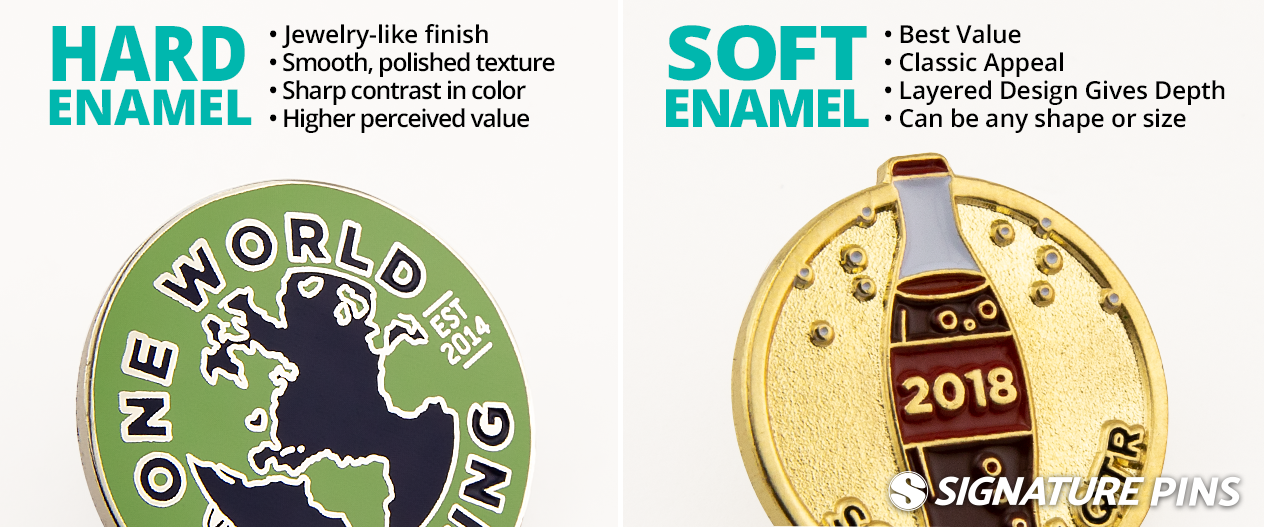 When it comes to choosing between hard and soft enamel, the decision will change both the aesthetic and texture of your pins. If you are unsure which style works best for your design, just remember the major benefits associated with each: