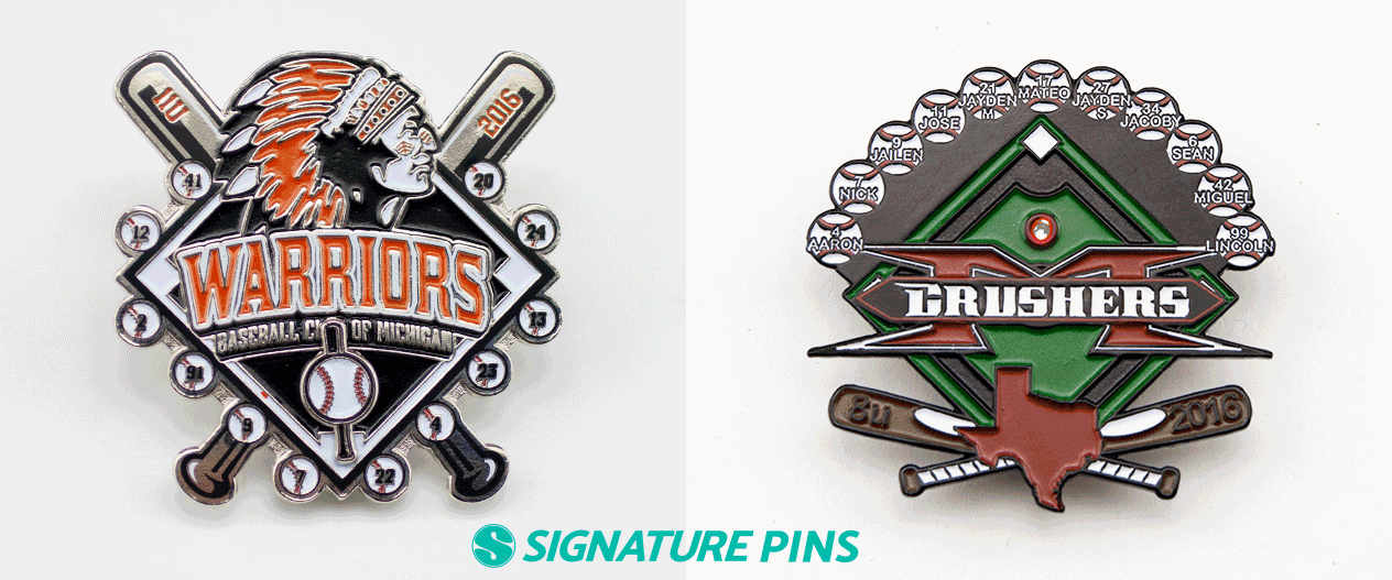 Baseball requires a lot of mental stamina, but when it comes to custom baseball trading pins, designing them doesn’t have to be a mental struggle. The process of coming up with the perfect design is fun and engaging. Our Signature Pins team offers free artwork and free revisions, making it easy to try out different custom options, color schemes and shapes until the design is just right. Just remember, if your goal is to create the most trade-worthy design for your team, pay close attention to these three things: