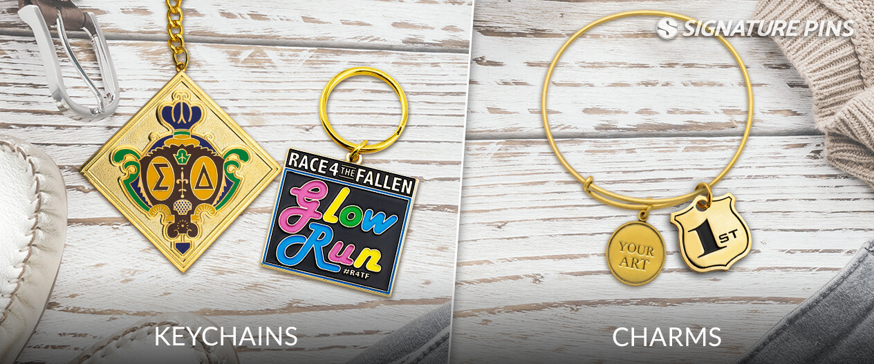 For years, you’ve come to Signature Pins for all of your lapel pin needs, but did you know that we actually provide more than just lapel pins? While we remain dedicated to being the number one source of custom lapel pins, cloisonne pins and baseball trading pins in the world, that’s not where our products and services stop. Whether you’re looking for custom coins, race medals, keychains or jewelry charms, we’ve got you covered. In fact, our custom products don’t even stop at items stamped out of metal.