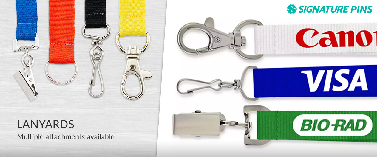 Ready for any occasion, our custom lanyards are made of the finest materials and come with a wide variety of different attachments to best suit your needs. Whether you’re sponsoring a trade show, need IDs for students or require employees to display security badges, custom neck lanyards from Signature Pins have a lot to offer.