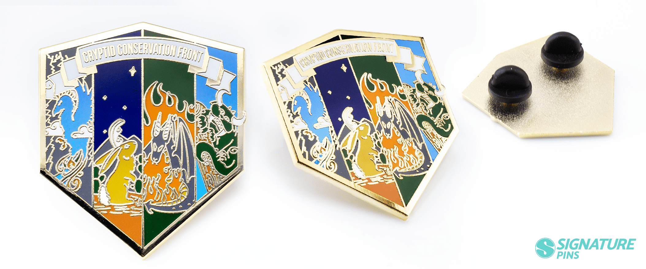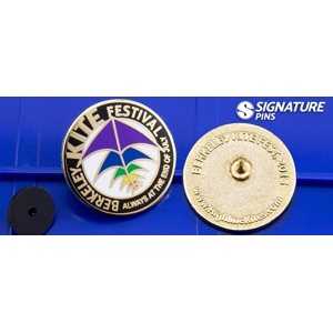 Cloisonné lapel pins, also called hard enamel pins, begin as a die struck pin, in which your design is stamped using tons of pressure from a metal die. This die stamp is created from your original design. After your pins have been struck out from the raw base metal (typically brass or copper) they go for coloring. The color filling process used in cloisonné pins starts with a powdered glass mixture which is kiln-fired at over 1700 degrees. This melts the glass-like powder into hard solid color areas. Because the color is filled all the way to the surface of the depression made with the die stamp. Afterwards your pins are buffed, giving a high luster glossy finish that easily shows the quality and class this style is created with. This look is what gives Cloisonné lapel pins their 'Jewelry' look.