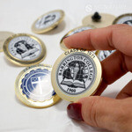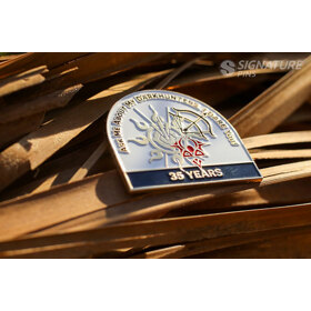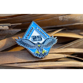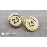 Die struck lapel pins are known for their pure simplicity and elegance! The Die struck process is most notable for having raised polished surfaces and recessed textured backgrounds. Die struck lapel pins use a brass or copper base metal. The Metals are chosen to achieve a high detailed stamping quality. We have many plating choices and options to add to your design and make it truly unique. Add a synthetic gem, edge numbering, or any of our packaging options to create a perfect keepsake, recognition gift, or anniversary pin.