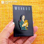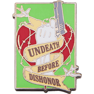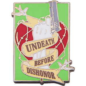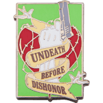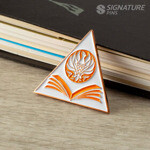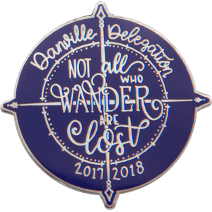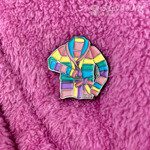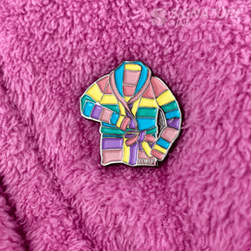 A lapel pin, also known as an enamel pin, is a small pin worn on clothing, often on the lapel of a jacket, attached to a bag, or displayed on a piece of fabric. Lapel pins can be ornamental or can indicate the wearer's affiliation with an organization or cause.