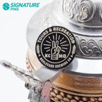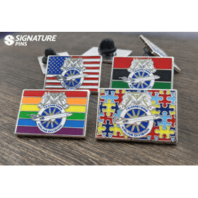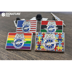 There are unlimited advantages to ordering silk screen lapel pins. One of the most obvious is their ability to be made into custom shapes and sizes. There is also no need for metal edges or borders around each individual color. This allows us to create an exact replica of your design. Silk screen lapel pins use bright, luster-filled colors and include a protective epoxy coating at no additional charge. This prevents the pin from being scratched when you wear it.