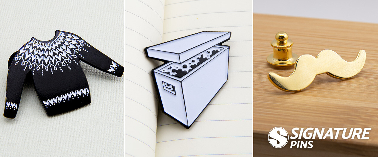 If you’re in the market for a set of custom lapel pins, remember to let your imagination run wild. Random, funny pins like these don’t seem to have a clear message, and that’s what makes them so much fun! Sometimes, avoiding text and sticking to a simple design is all you need to get people talking.
