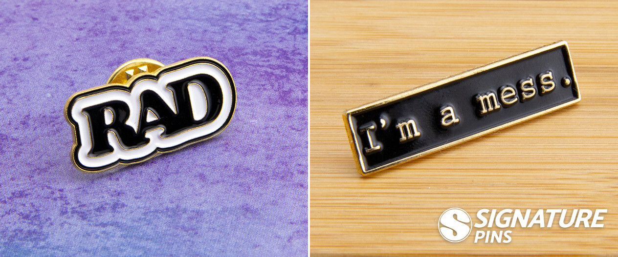 We all have bad days when we feel like a mess, and we all have good days where we feel pretty rad. These aren’t the only pins that we’ve made with random words or phrases mixed into the design, but these two always seem to make people laugh around the office. Whether you feel like a mess or you’re feeling pretty rad, every day is a good day to wear a funny pin like one of these.