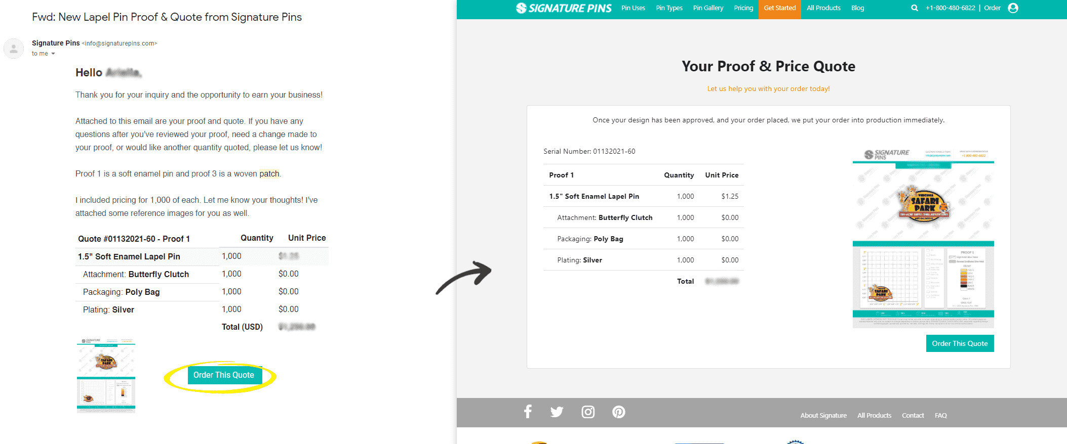 Click “Order this Quote” at the bottom of your quote, or click on the image thumbnail.