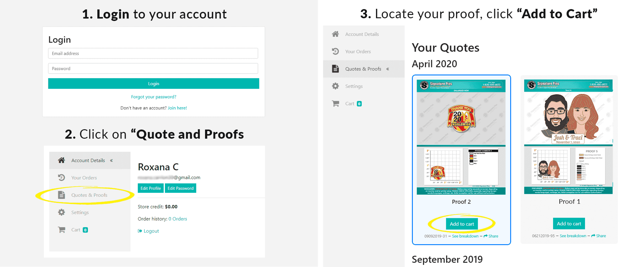 Next, click on “Quotes & Proofs” on the left side of the page.